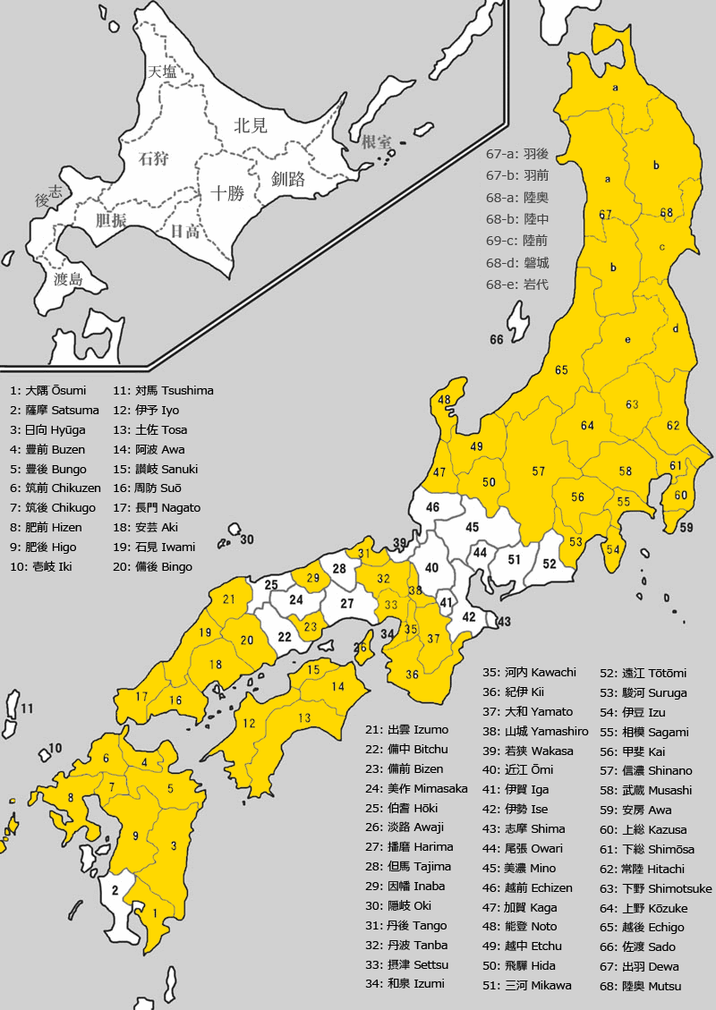 ふと気になって、天一で殿が行った国をオレンジ色で塗りつぶしてみた。こうすると結構全国周ったなと思いつつ、離島とか薩摩とかどうやって周るんだろうと気になった。