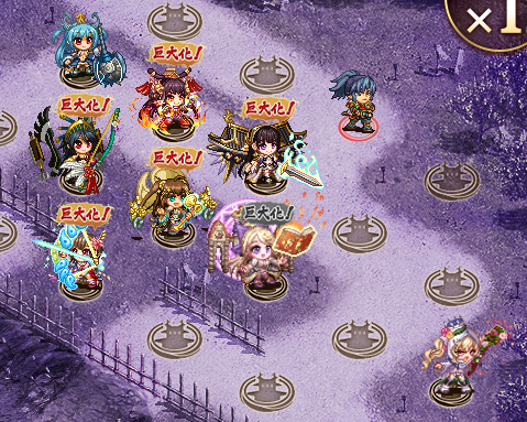 クリア編成、レベルは全員90~100くらい。平安がいないので気稼ぎは柳ノになるんだけど、弓に柳ノを使ってしまうと高火力の聚楽等が入れられなくなってしまうのでそこがきつかった。火力確保のために盾枠を排除して時間停止魔法を持つ二人で止めて倒すプランを選択した。