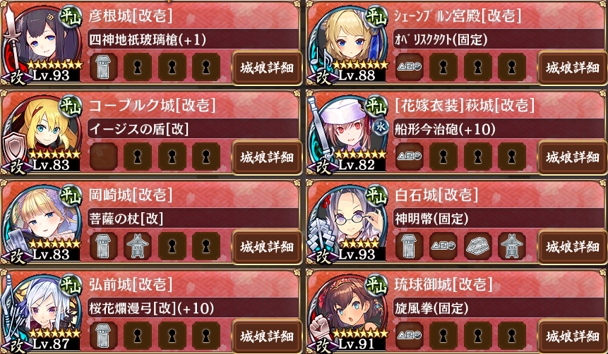 このメンツでクリア可能かどうか判断もらいたい。浜松いれば蒲生まではいけたんだが蒲生で詰んだのでいま試行錯誤中。編成変えアドバイスもあれば教えてほしいです。
