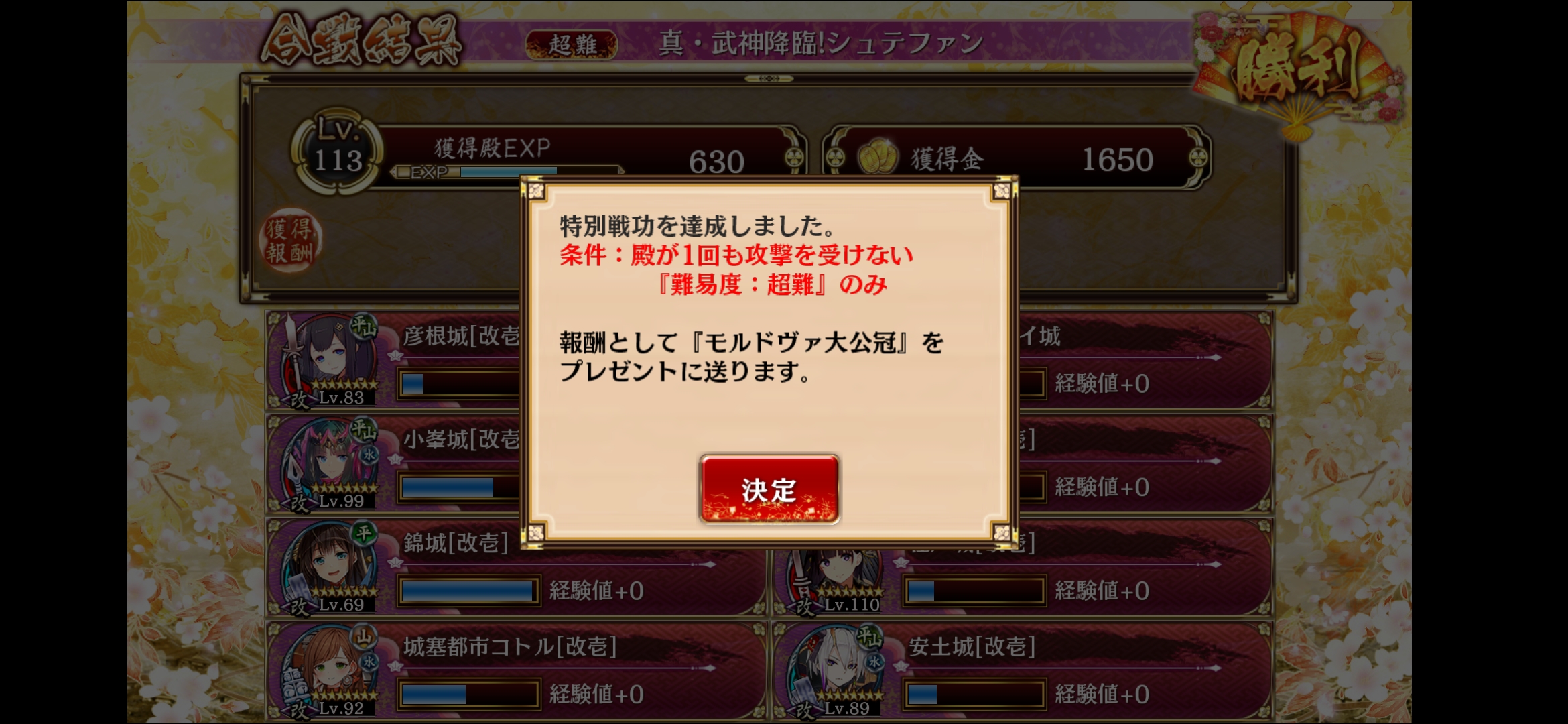 滑り込みでなんとかいけたった!画像で隠れてる真岡城ちゃんがMVP あとクリアできなさすぎて珠で交換したコトルさんも相当偉かったやで~