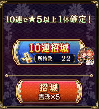 月間育成パックは、3000円分の霊珠に10連と育成素材もついているから初めての課金とか向けとしてお得だね。ちな、10連招城券が付くということはこれをもっと増やせるという事か…
