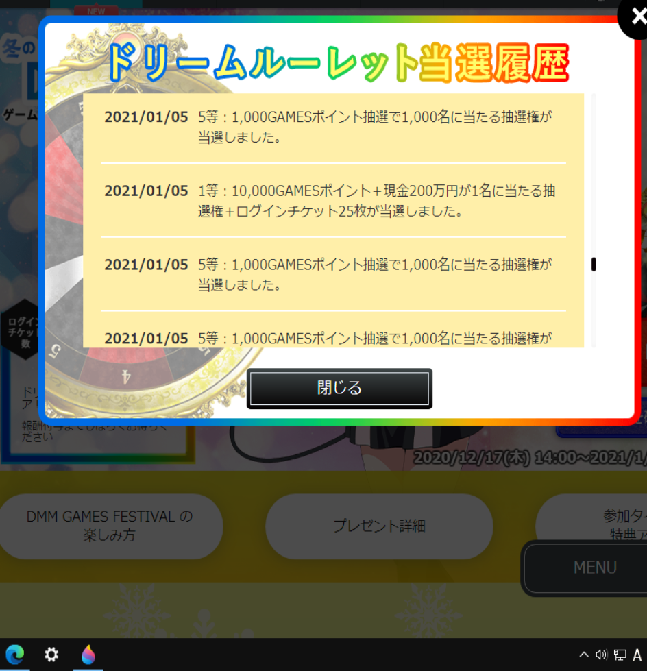全部がルーレット板が一等になる確定演出だった