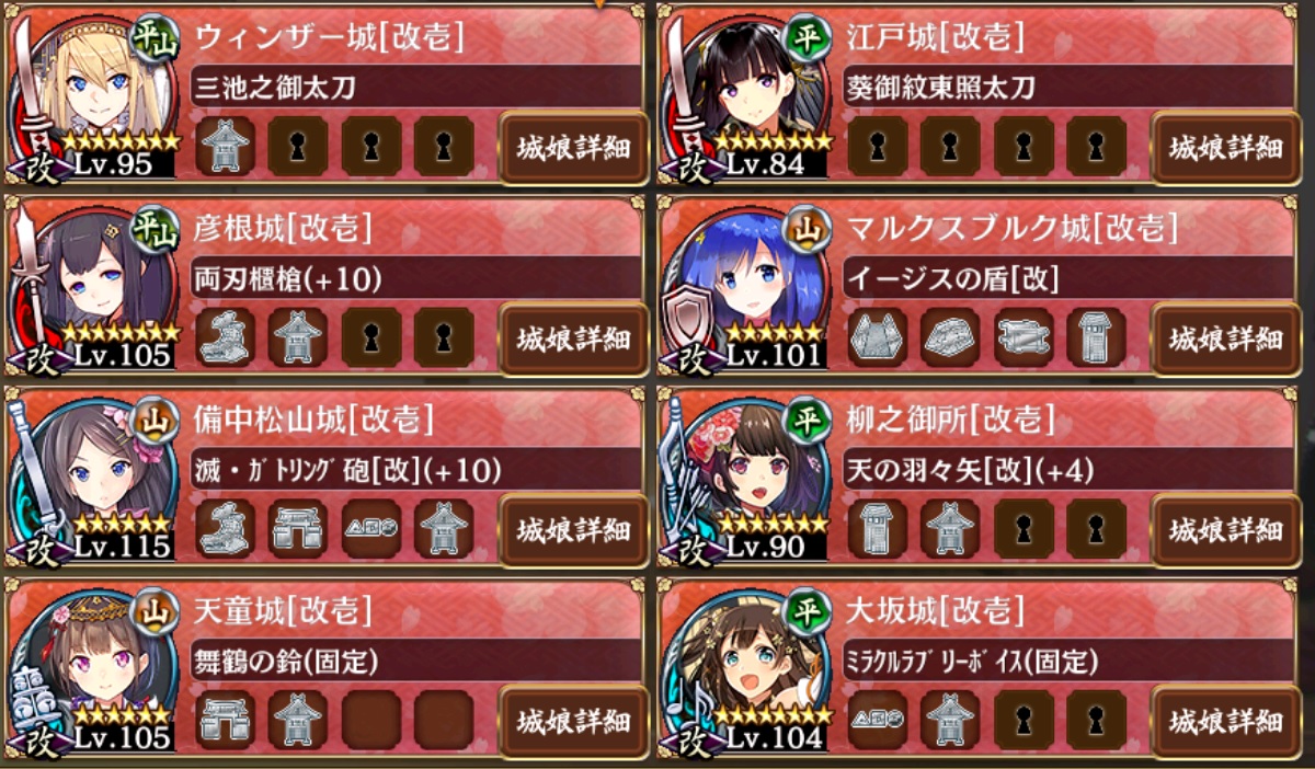 戦功1を [[この編成>https://uploader.swiki.jp/index/single/host_name/scre/thread_id/33790]] でクリアー出来た殿です。次に 「この編成」 で戦功2「東北・北海道の城娘を2体」に挑戦しているのだが、最後の龍と鯨が倒せないので、正宗が止められない。どうしたもんかな。柳之御所を[正月]五稜郭に変えたりしたけど、上手く行かない。