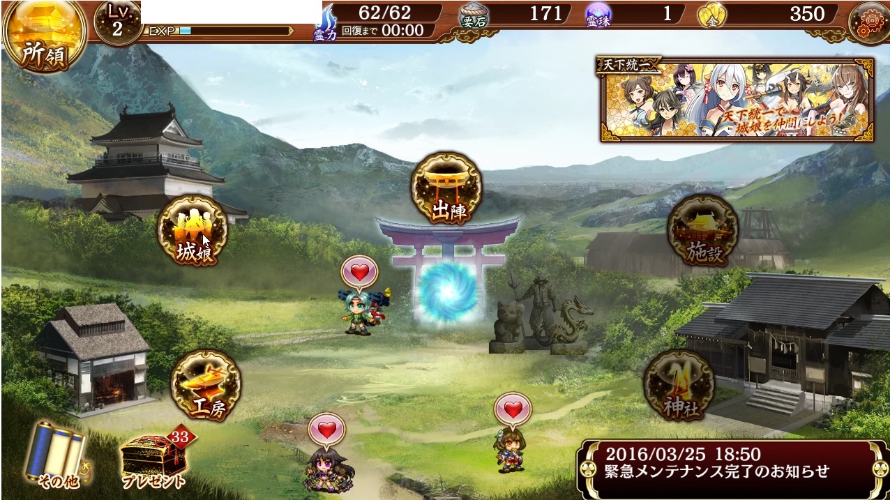 そうはいってもこれだぞその「箱庭」 これなら今の御嬢・城娘がデーンと出てる画面の方が良いと思う 勿論別の形で図鑑ドット活用してくれるのが新しく出たら嬉しいが