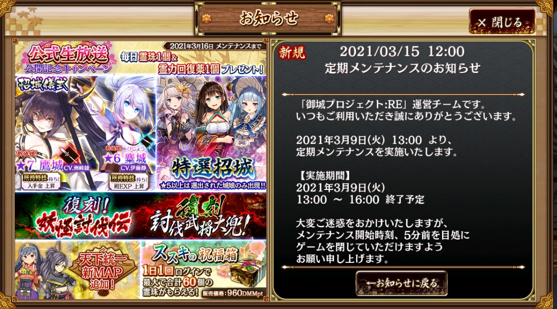 メンテ情報が過去になってる。タイムスリップでもしたのか?w
