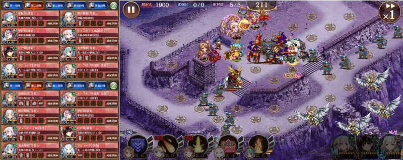 福島は大分フォーメーション変えないとだめですね。地形一致にこだわってないけど、序盤~前半の大騎馬兜とか眼鏡一の谷とかのラッシュを防ぐため、本3人と名古屋のダメ計+虎&相棒の足止めor岩殿山の離間で同士討ちさせて防ぎきるという戦術で、防御低い雑魚は江戸で広範囲にばっさりできたけど、ぬりかべは名古屋でないと倒せず。あと本計略は限りあるし、最大化名古屋の方が威力あるのでラピュータと一緒に大鷹退治し(これも射程短い三成改だと大鷹を逃がして殿がやられケースも、かといってアダマントレイだと福島への攻撃力が弱い)、終盤まで持ち込んだけど、一番いい結果で残り福島だけが残った感じで。キャメや千早がなかったので武神化福島を集中攻撃したけど耐久削り切れず負けました。虎出した時は相棒で少し足止めしたけど決定力にならず。盾はノイシュないし、マルクスブルグも未改で出しませんでした。