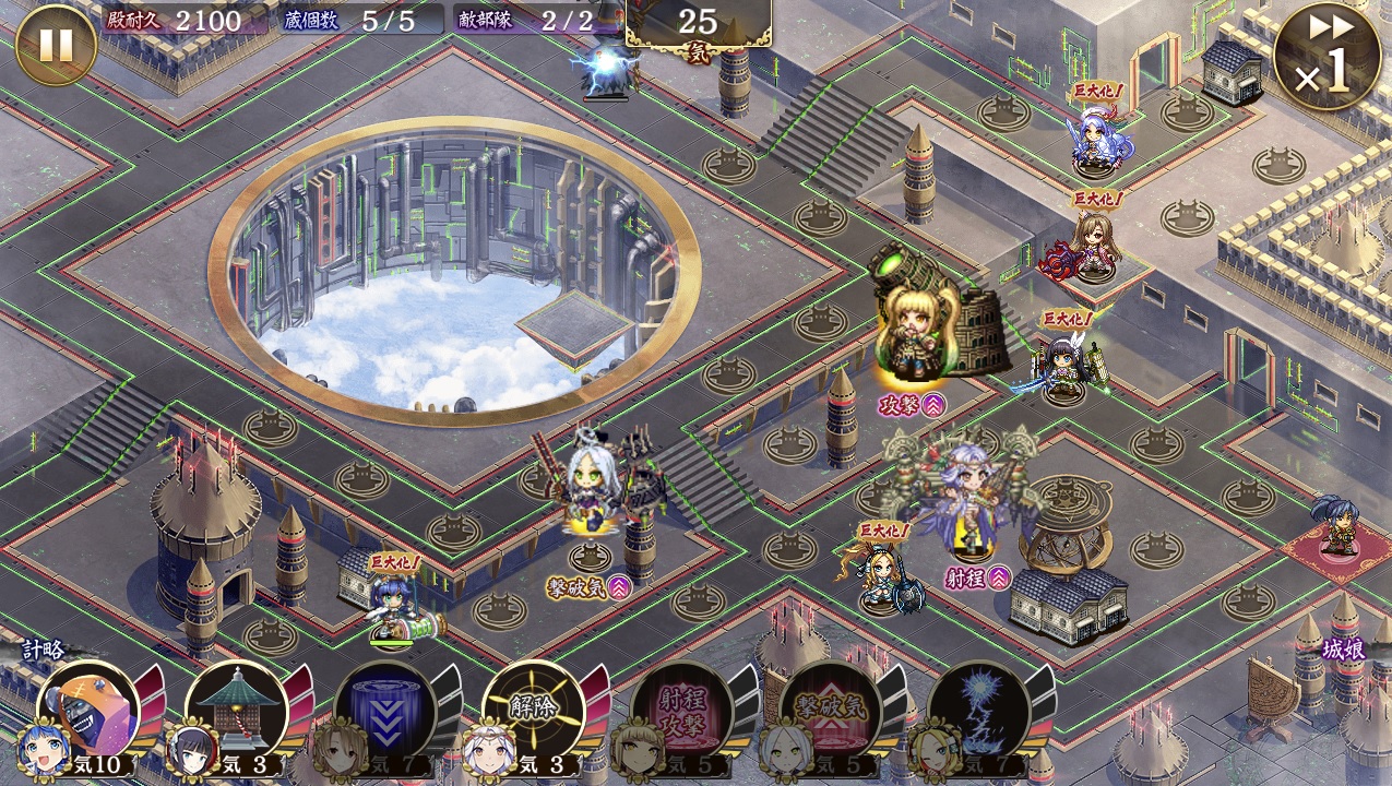高レアの暴力でごり押した。この配置で敵ラピュータの範囲外、かつバベル+ディンギルの範囲ダメ&雑魚処理の爆風で敵ラピュータにダメージ入れて倒せる。普通と同じ配置だから所見で難戦功クリア出来た。