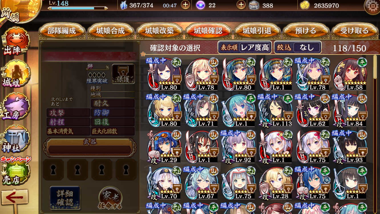 年単位でまともにプレイせず休止状態でした。4周年のチケットがあり誰を選ぶべきか悩んでいます、他の方の質問などを見ると江戸城を取る形で問題ないのでしょうか?それと☆7の改築についてです、羅紗改壱が1体あります。それと手持ちのダブリ熊本で2体改築するとしたら誰をするのがいいかアドバイスをお願いします。(ダブリは突破より改築に使う方が基本的にいいとよくある質問で読んだため改築に使おうと思っています)