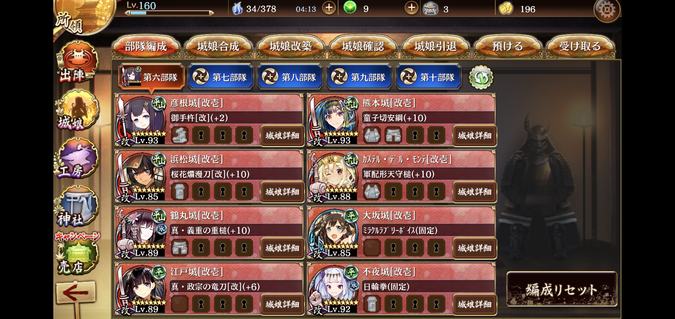 丁寧に答えて頂きありがとうございます!ちなみに普通はこのメンツで江戸と浜松の特技計略でゴリ押ししました。足止めは盾と政宗の刀を江戸に持たせました。もし、シャンティ、岩殿山、バベルを入れるとしたらどの城を変えるのがベストですかね?あとトレドが使えると聞いて育てようと思ったんですが必要ないですかね?