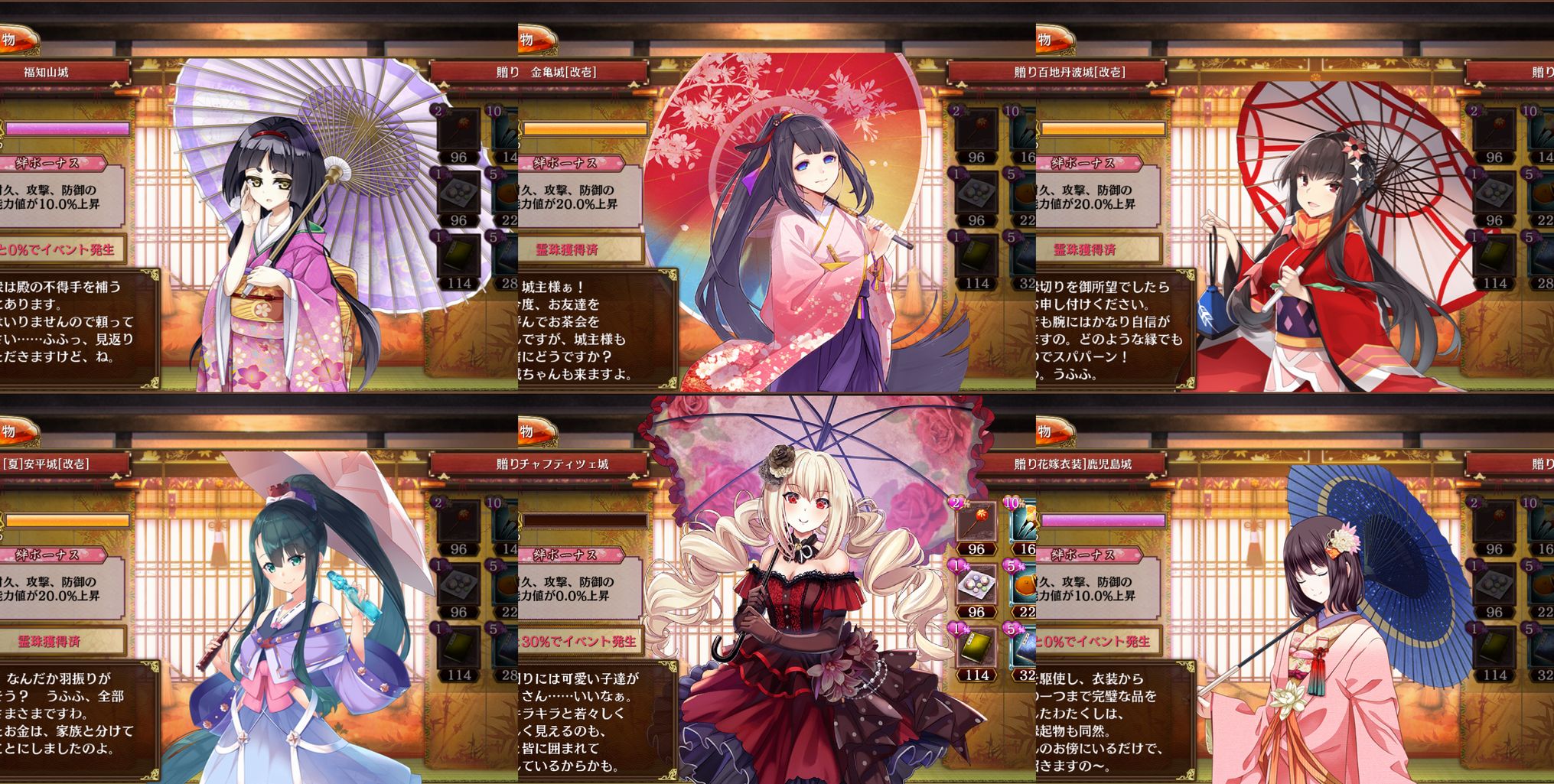 招城でチャフティツェ城が来てくれたんで早速贈り物しようとしたら、あまりのデカさに驚いた。枠はみ出てない? いいの? って思ってウチの傘持ちっ娘たちを比べてみたんだけど……全員上のライン違ってるやん! 仕事雑ゥ!