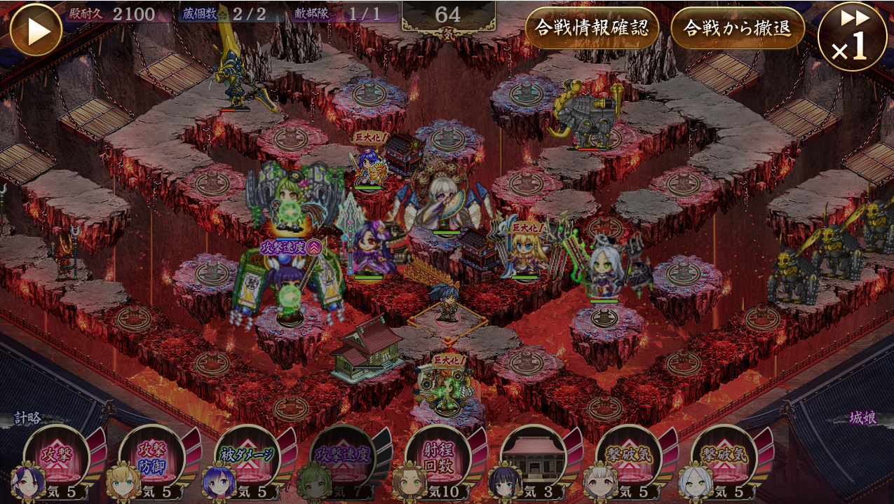 6にアラゴネーゼ(+14都於郡)がいれば、利家+力士含む左ルートも完封出来て簡単過ぎた(4番周囲に届く)ので参考までに。 他は22にマグナ装備がいれば兎型兜のラッシュを巻き込めるからオススメってくらいで、他キャラはそれぞれ代用応用効く感じ(金華山はバフ要員でほぼ殴らず久能山に至っては何もしてないし、蔵前を盾にする必要も無かった)。