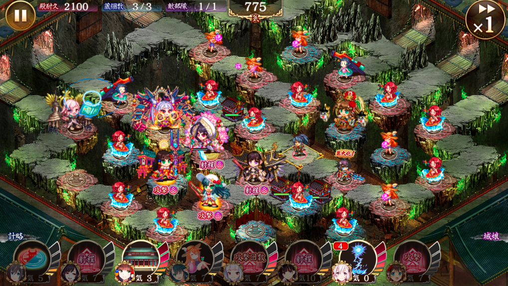手持ちでは15審不可能と判断、攻撃強化を外した14審でなんとかクリア。手持ちに夏安平いなかったらとても獄卒抑えきれなかったわ。獄卒を撃破した後、最後に残った左真ん中ぬりかべの為に不夜22→6、夏安平16→12、清州8→22してます。そこから更に10分近く掛かってゲンナリ。15審は記憶から抹消していいやw