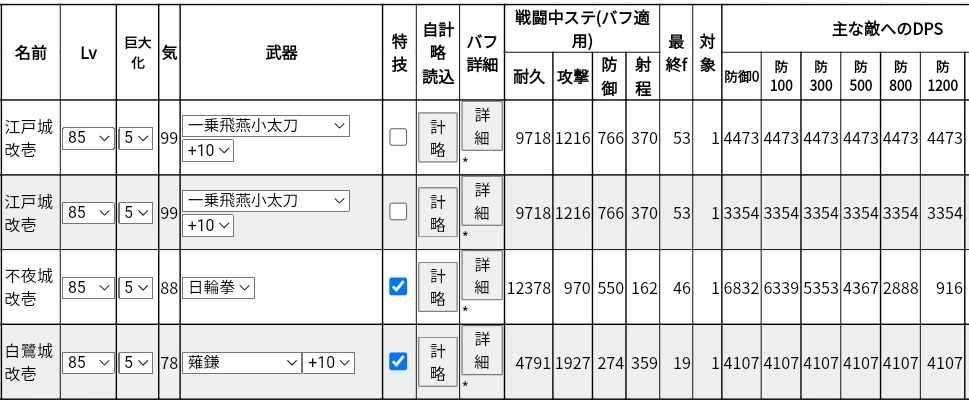 それするなら外部バフデバフ抜きでいいんじゃねと思ったので載せとく。一言で言えば白鷺よりちょっと高い火力