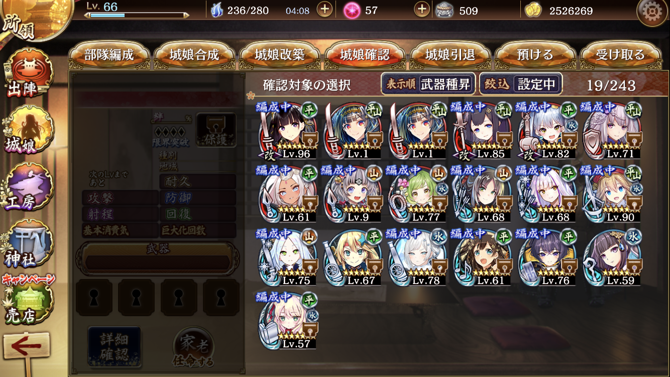 2ヶ月目の初心者です。育成に関して、どの城娘から手をつけていいかわからなくなってきたため投稿します。「この城娘強いのに全然育ててないやん!!」や「この城娘はもっとレベルあげといた方がいいよ!」等、教えていただきたいです。よろしくお願いいたします。現状のメンツで天下統一は54、イベントは絶の普通までならクリアできます。