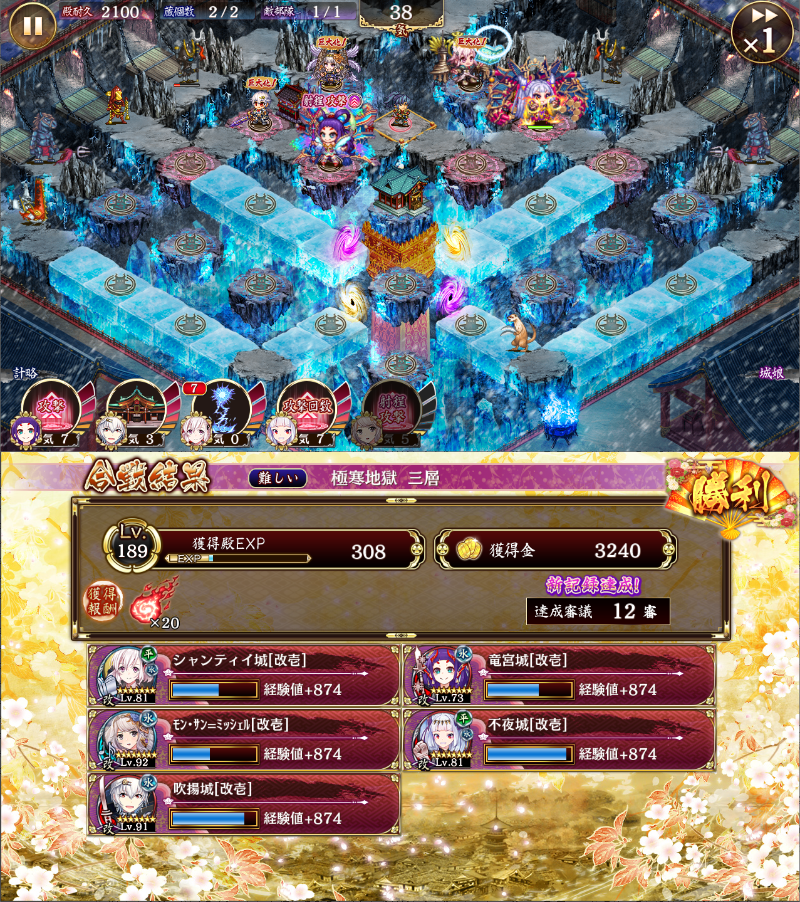 何度やっても12審クリアできなかったので、初心に帰って竜ちゃんとモンサンを入れたら12審いけました。配置とレベルです。