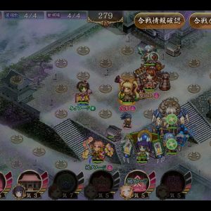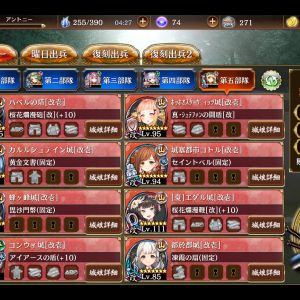 耐久、攻撃、防御を除いた12審議。自分の水は層が薄いので特定武器審議をいれたら2年位前?の編成になってしまったw吹揚が4→18。あとは配置図通り。ネスヴィジはペテを出すまでの回復計略目当てで入れたのですが、必要なかったようでクリア時は出撃せず。極寒4-6は歌舞、串全く出番がなかった…敵の攻撃が弱めなので防御固めてひたすら自然回復or計略回復or巨大化。