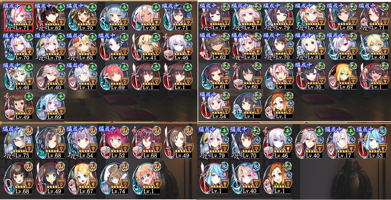 当方、復帰後1カ月程の殿なのですが、見ての通り山水の高レアが平、平山に比べて圧倒的に少ない状態です。なのでアラゴネーゼ城の交換を考えているのですが、他にもオススメの城娘がいたら教えていただければと思います。(平、平山も揃ってるとは言い難いので、甲府城の交換も検討してます)