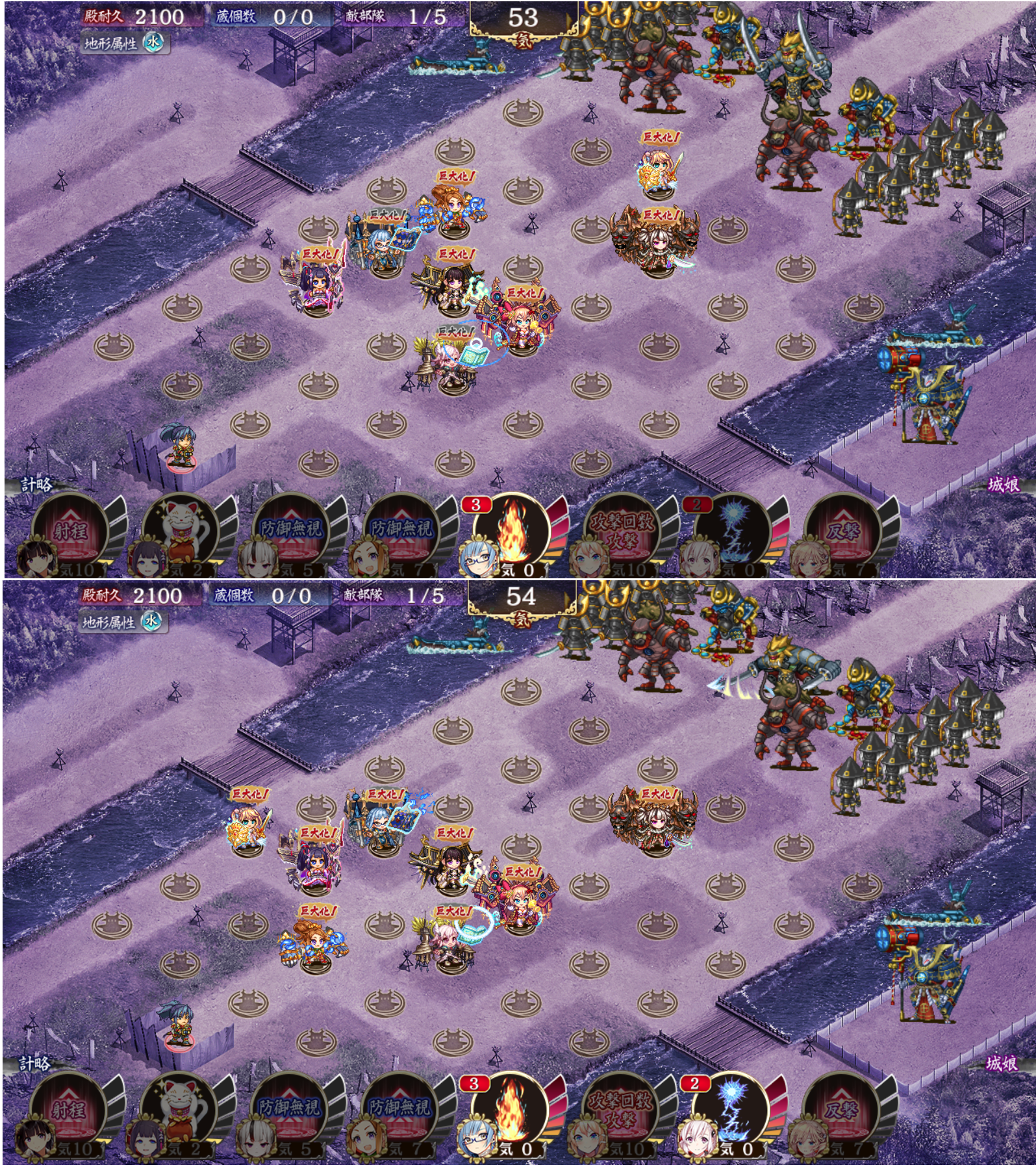 やはり防御無視は正義。左右から防御無視城娘で挟んでやったぜ。島津義弘倒す前は上画像。倒したあとは下画像になります。これで難しいクリアしました。
