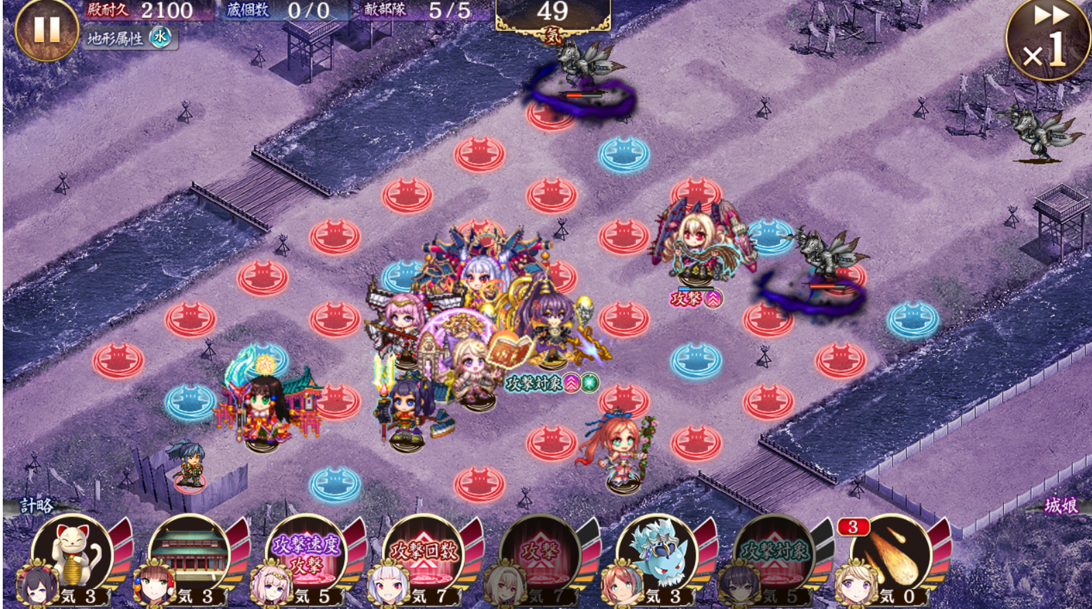 配置はこんな感じで初手不夜最大化次彦根ニ波の武士倒した後チャフとママ最大化その間ちょくちょく白鷺で足止め 気があまり出したら平安最大化 最後に島津来るところで白鷺とペーナ最大化して〆ですね