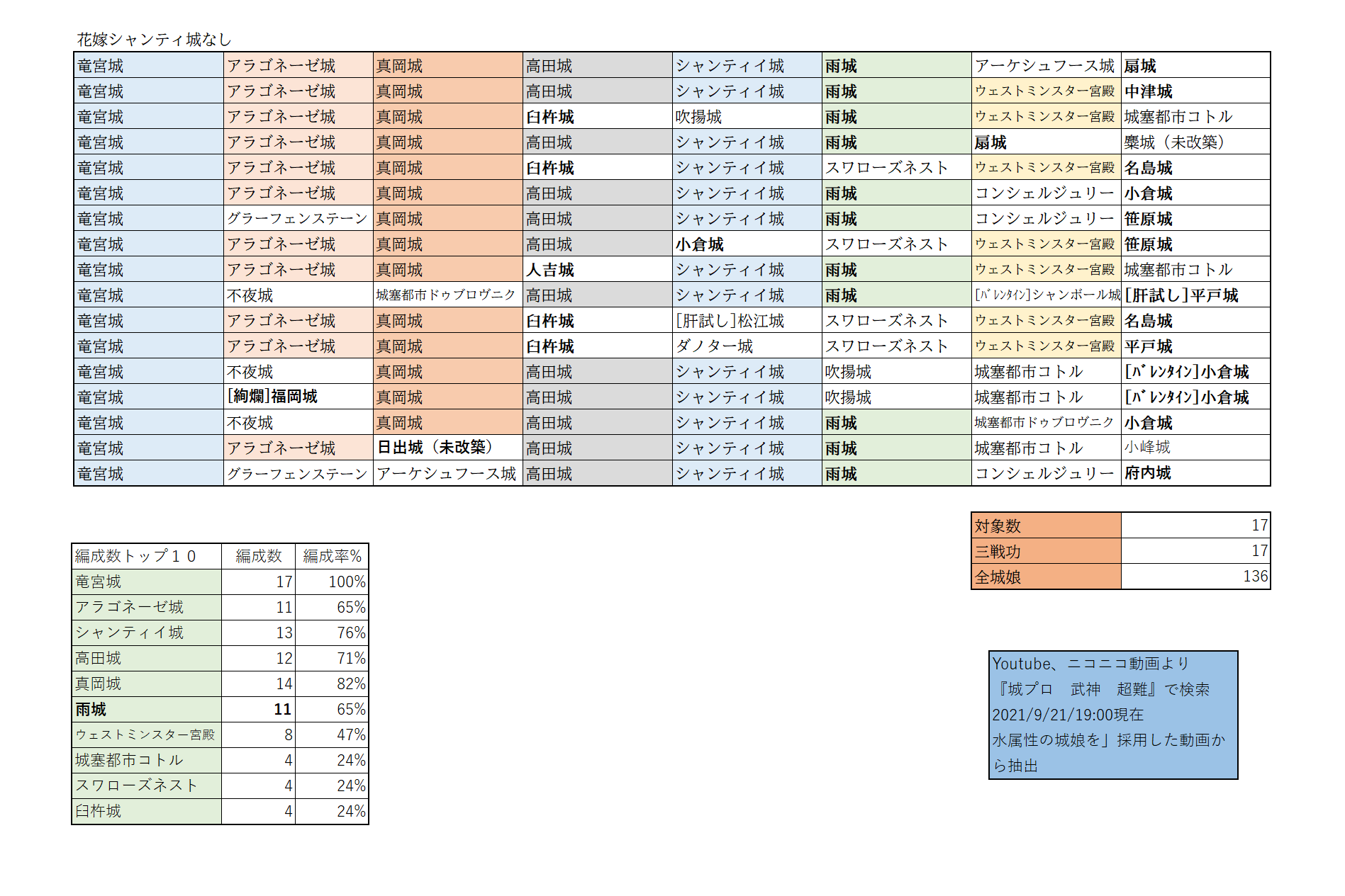 需要があるか分かりませんが、花嫁シャンティイ城とアラゴネーゼ城が編成されていないケースもまとめてみました。この前言い忘れていましたが、動画投稿者の皆様には感謝申し上げます。ところで、お聞きしたいのですがニコニコ動画に投稿した動画の概要欄にこのページのURLを貼り付けても大丈夫でしょうか?