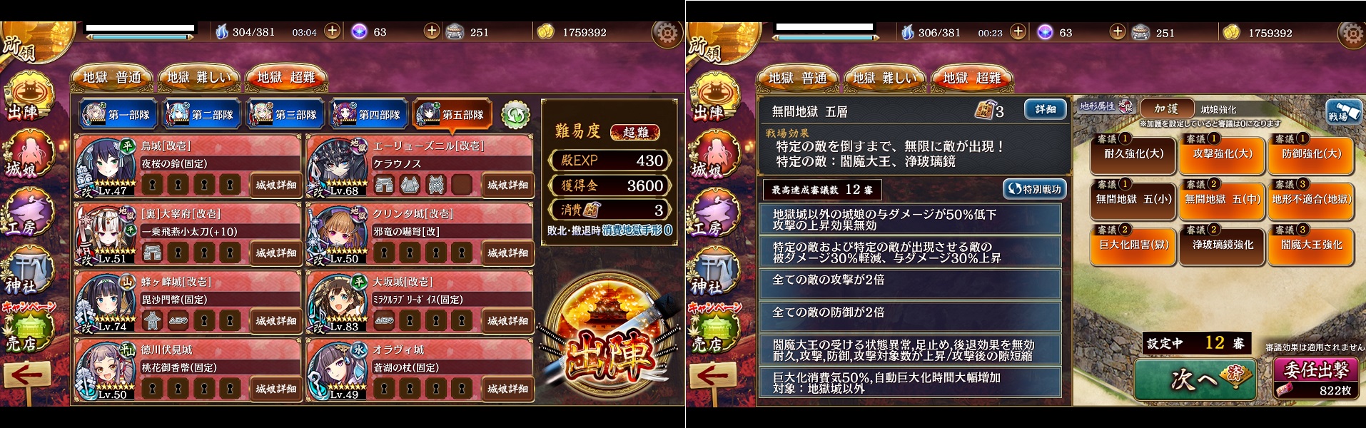12審をクリンタ城と裏大宰府がなんとかしてくれました。やはり気、気の暴力は大概のことを解決する。浄玻璃の反射ダメ1.3倍は解決できなかったので与ダメ30%減の子を探すことにします