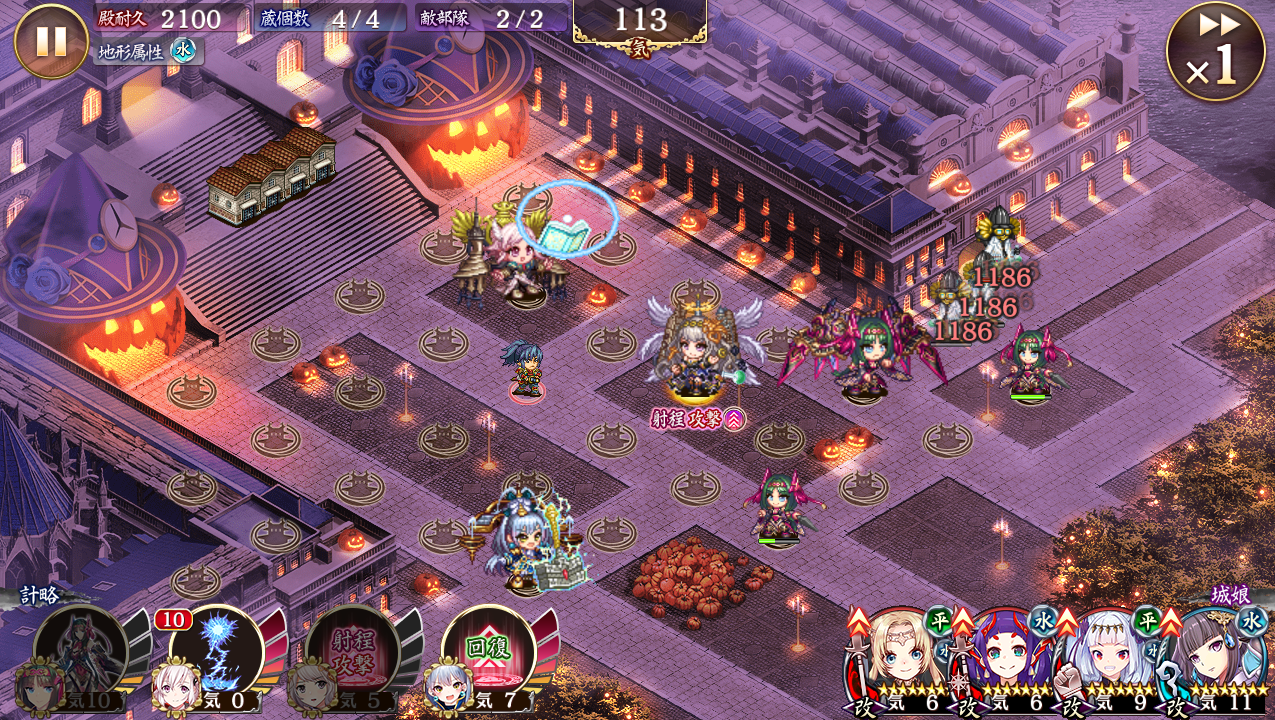 手持ちで4人構成。(画面下4人は出撃してないです。)初手シャンティで気を貯めて小峯最大化。そのままだと毒で死ぬのですぐにモンサンで回復。分身だとあんまり削れない敵が多かったから、小峯本体はケラウノスじゃないときついと思います。左側のペテルゴフはたぶん他の近接でもOK。