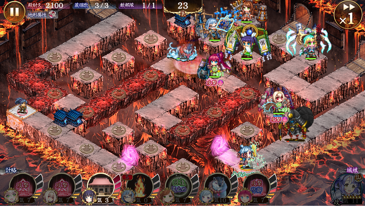 性能強化小までの13審議。手順(数字が入ってるのは配置画面と違う場合です)。4カルル、6虎伏。コトル、蜂が峰。虎伏最大化とコトル計略で凌ぐ。チャフ配置最大化。虎伏頃合い見て撤退。蜂が峰最大化。リヒテン、虎伏再配置(他耐久力減って再配置遅い場合はアビラをワンポイントで配置しコトル計略で騎馬の抜けを防止します)。あとは巨人動くまで流れで。巨人動く直前に5に蜂が峰トークン。動き出したらカルル(カルルは最大化したら撤退して温存しておく)、アビラ配置。アビラがリヒテン計略をもらい巨人の攻撃を巨大化しながら耐える。配置画面では14に虎おいて足止めして倒しましたが22で止めた方がよかったでしょうね。ルシェノフは上手く使えなかったと思います。巨人に対して一応空蝉してました。