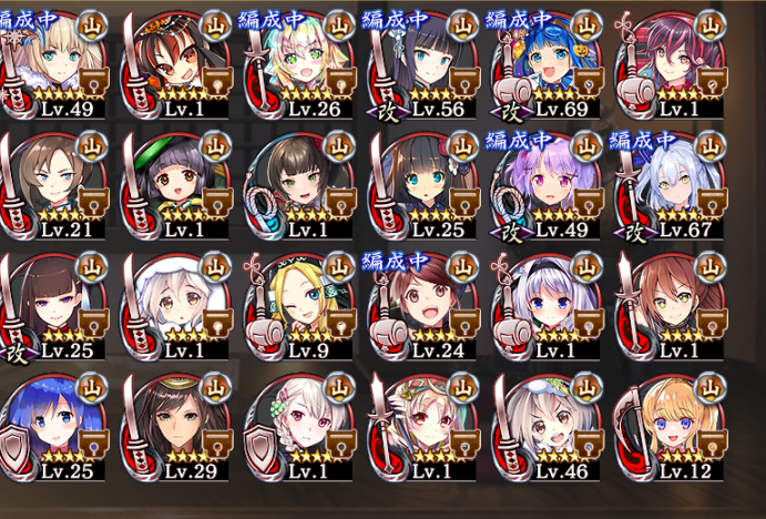 山の手持ちがこんな感じなのですが頭数が足りてるのか足りてないのかすらわからない。この子育てたほうがいいよーとか武器種でこれがお勧めとかこの子狙えとかありましたらアドバイス宜しくお願い致します。