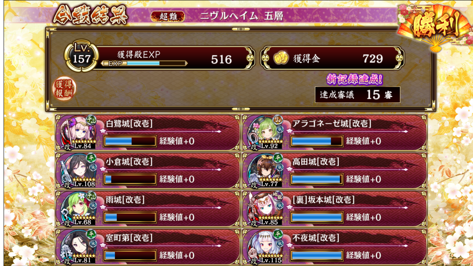 何回も試行錯誤してようやく15審 ここはやっぱり序盤からアラゴ最大化していかないときつい 左の鞭は雨で防御して不夜で無理やり倒す ここ15審取るには最低でも室町くらいは欲しいわね