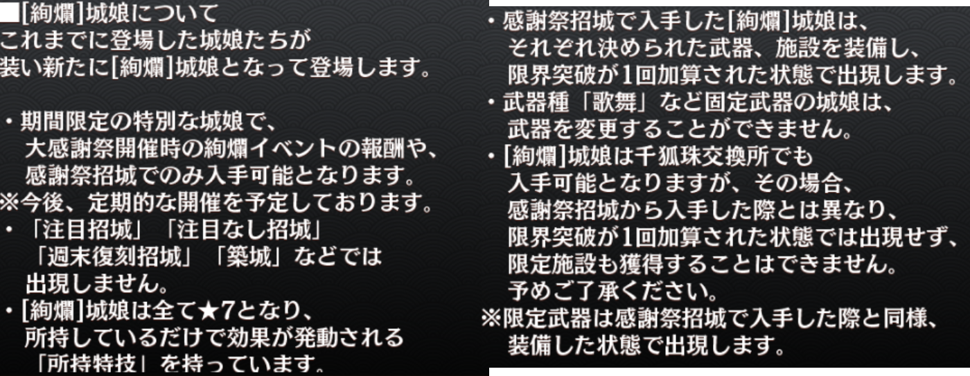 なるほど。確かに微妙な表現かもしれんかな。今回のスタダ招城が特殊って感じなんだろうけど、絢爛とか元々特殊な条件付けてやってたキャラだから違うっていう説明を強調しててもいいかんじはあるか。