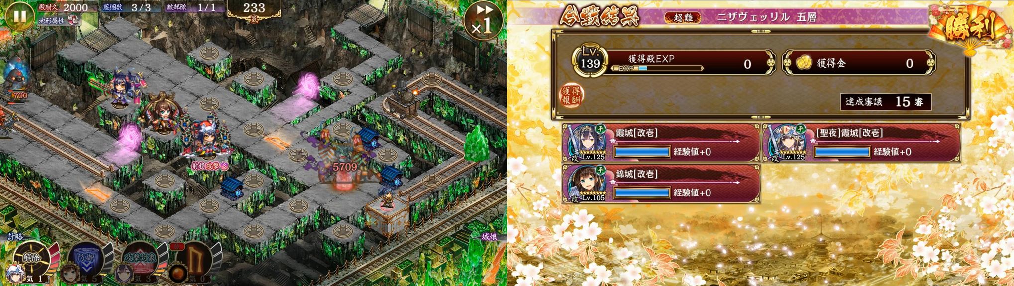 串も良いけど結局物理で殴り倒すのが一番簡単なマップ。高レベル3人だけど、この配置に本、足止め、計略短縮を足せば無凸も圧勝できるはず(特に聖夜冬宮殿とストラホフがあれば最高)。多重巻き込みが強いマップなのでマグナ霞城の代わりに足利やマルチ大砲なんかでも良いかも。