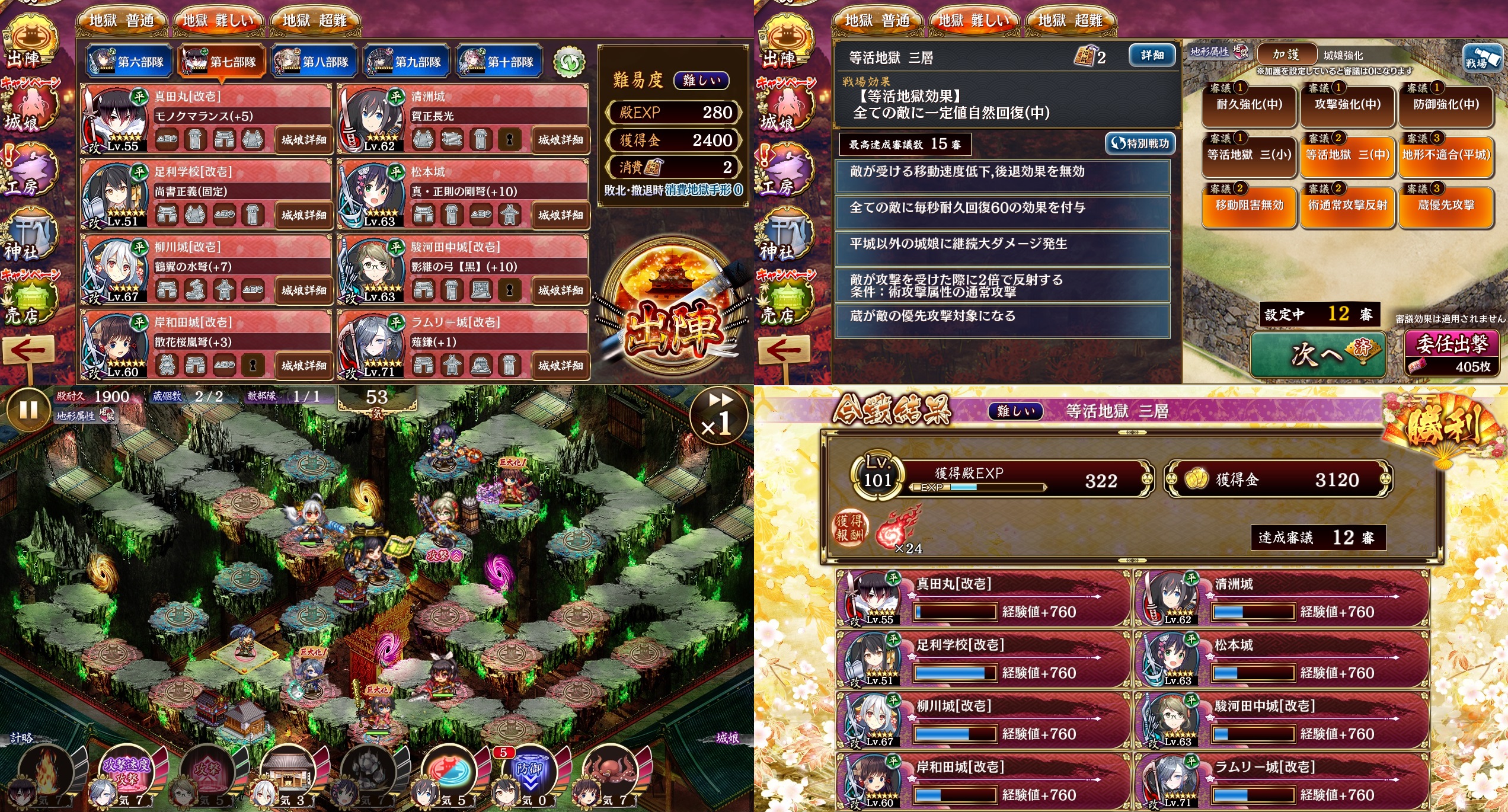 柳川城は最初9。下の赤騎馬三体倒したら撤退→清州計略を8に使って配置。陣笠兜は気が余るなら計略で焼いてもおk