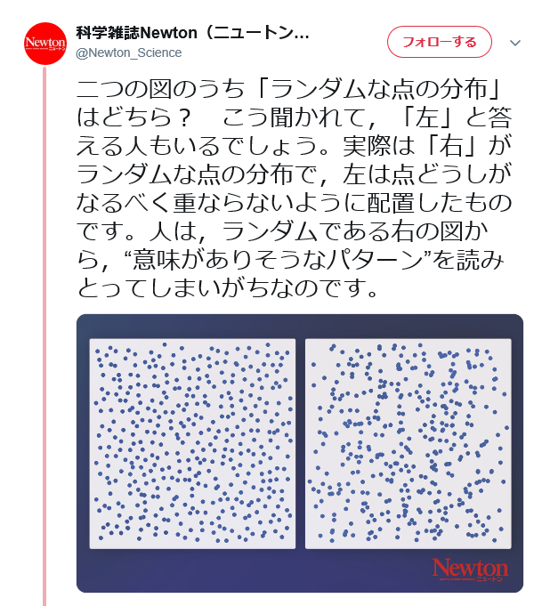 まあこういう話もあるし……ランダムって寧ろ偏らないとおかしいんだよな