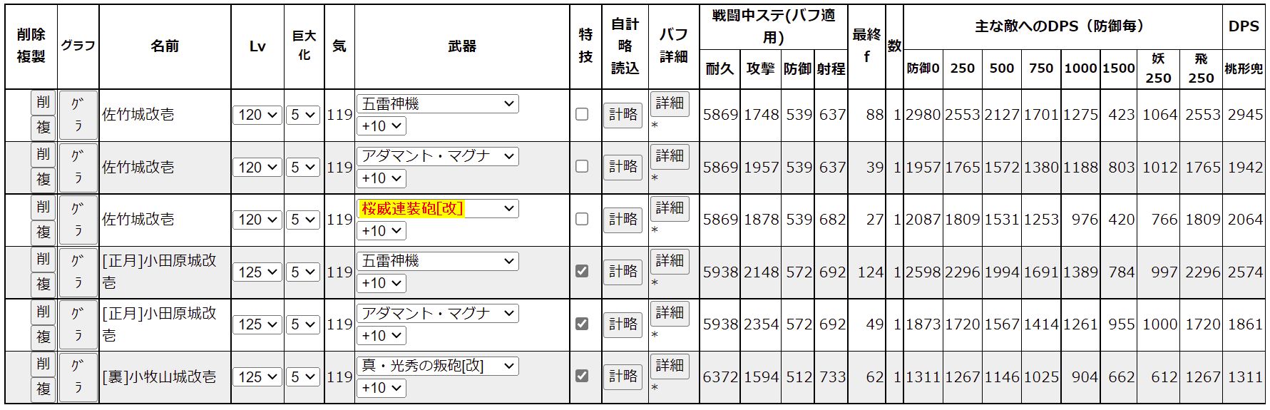 ノーマル佐竹ベースにバフ弄ってダメージ計算機で平山マルチ鉄砲と比較してみた。流石2倍速だけあって五雷の強さがパねえ。計略持続時間とインターバルがマップにマッチすればかなり良さそう。