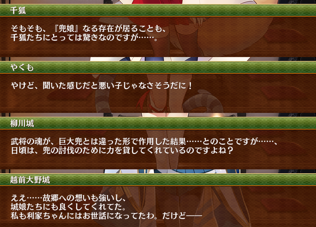 イベントで突然フィーチャーされ始めて嬉しい… 御城ソウルじゃなく武将ソウルが作用しただけで特に武神で看取った後云々の設定はないみたいね