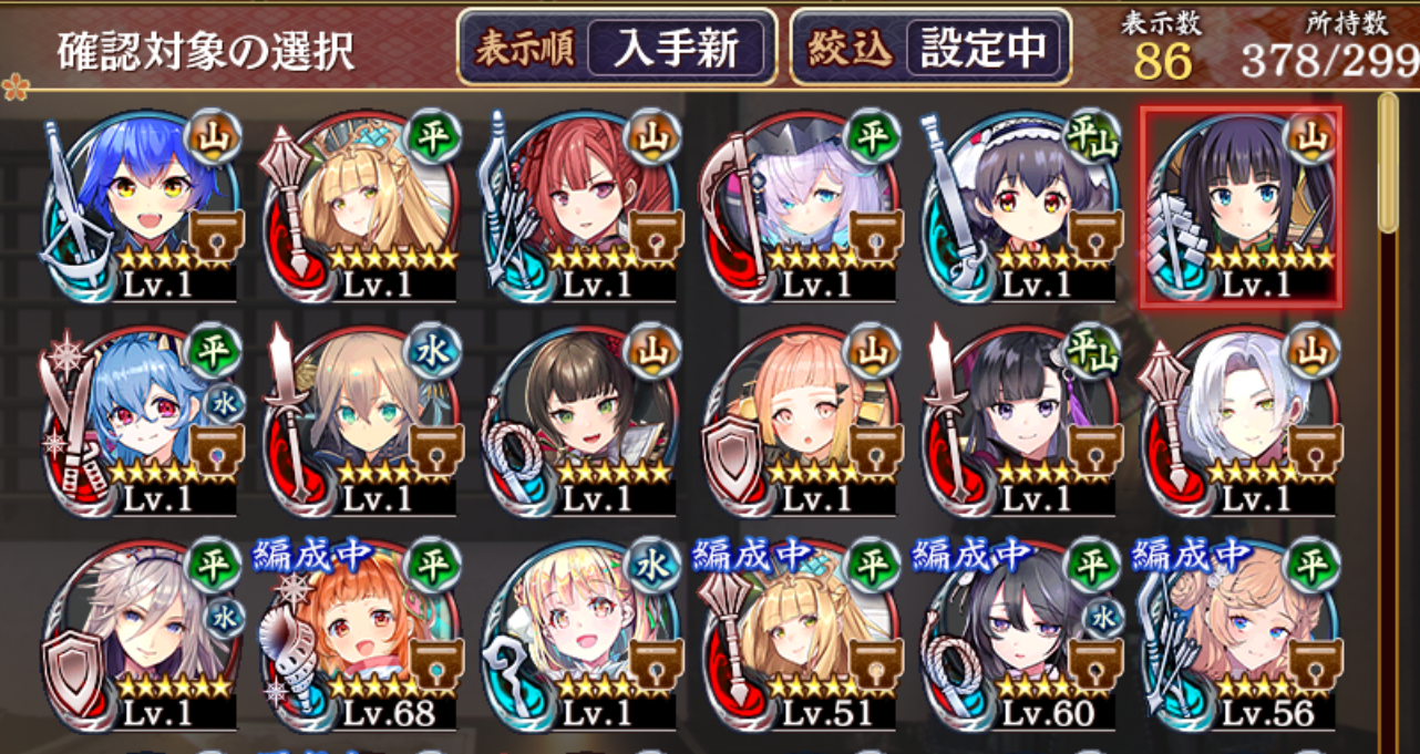 10連招城14回。クラックから鮫ヶ尾まで。星7x7、星6x5。虹が星7に寄ってくれました超ありがとう。他のゲームだと古いのしか出ない印象だけどお城は違うのね
