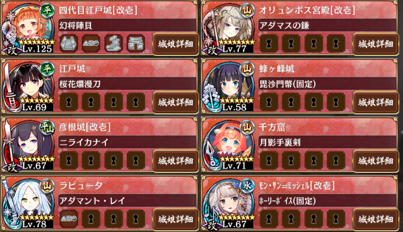 一昨日始めたばかりなのですが、改築の優先度で悩んでいるので質問させてください。悩んでいるのは江戸、蜂ヶ峰、ラピュータの三人のうち誰から改築しようかなってところです。編成(予定)晒すので、編成についての所感、ご意見もお聞きしたいです。