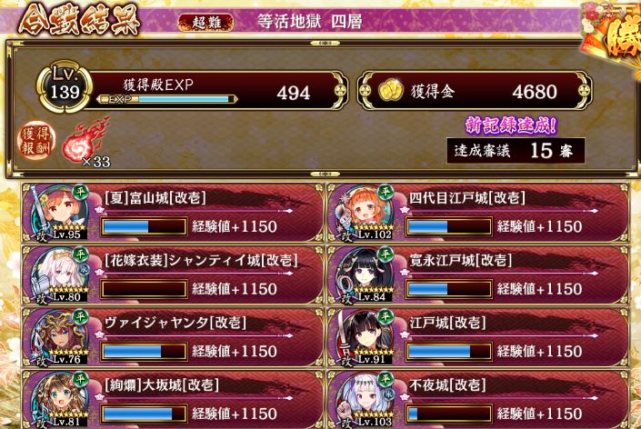 どうしても倒せなかったフルスペック獄卒長撃破。夏富山に五雷でノックバックX5で4代目の速度バフで近寄れなくなる。