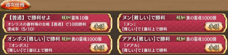 普通全部10、2層、3層は全部12。なのに週次が未クリアってどういうことなの?おまかんか。