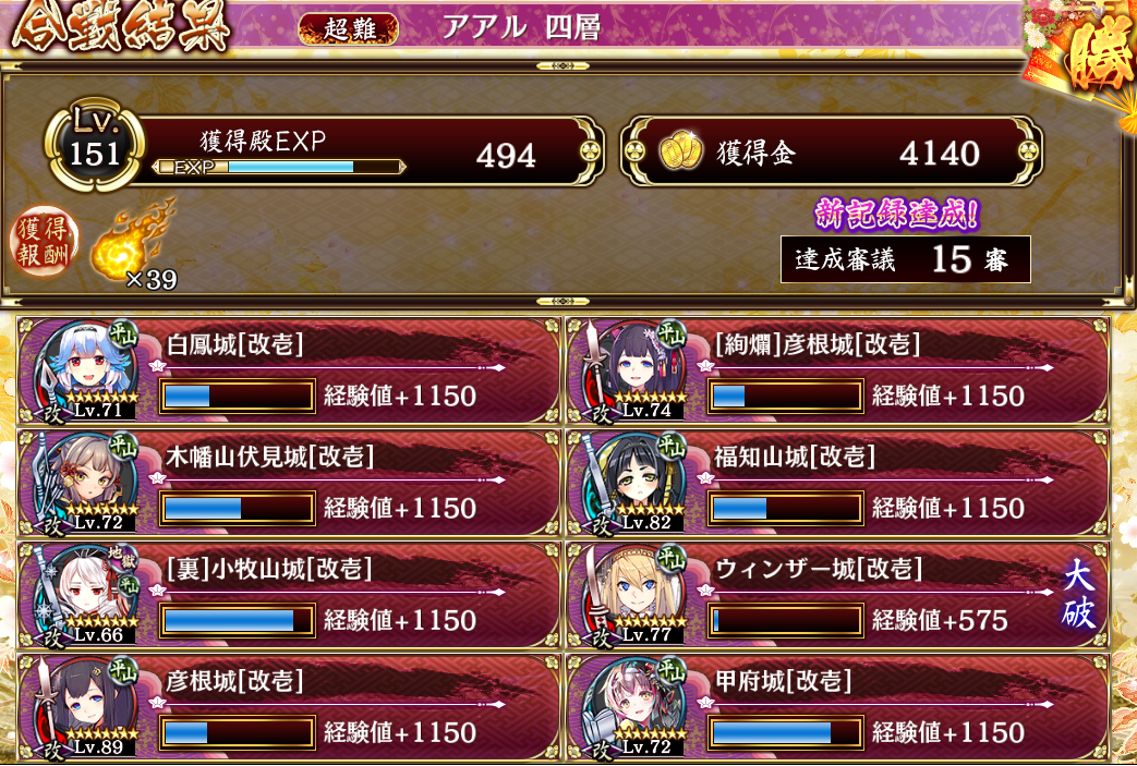 きっっつ…。オバワ小牧山にアンサラウインザーという超TD祭り様々な戦果。どの動画見ても浜松なり肥前名古屋なり白鷺なりが入ってて、何とか自分の手持ちでカバーできないかと試行錯誤してやっと達成