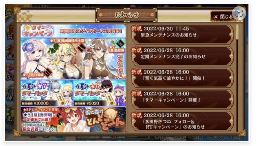 復刻販売か。これでやっと[夏]肥前名護屋城 か夏シェーンが入手できる。これでやっと平山星7歌舞が手に入るよ。星6はどの子がいるのかわからんから放置。