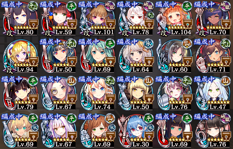 ★7以上の手持ちがこれ(DMMより上は改築済み)なのですが、地獄攻略視点での改築優先度はどんな感じでしょうか?それと、城プロではメンテ情報(翌週イベント)の予告は無いのでしょうか?