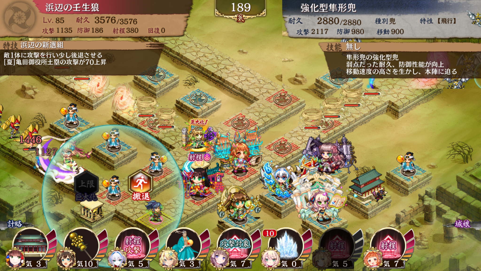 伏兵審議だけはずして使ってみた。が、雑魚鷹にすら通らない。レベル125でも1体配置だと地形ボーナスなしで攻撃1200ちょいなので、単体物理でこの攻撃力はきつい。もちろん置き場所の問題も。