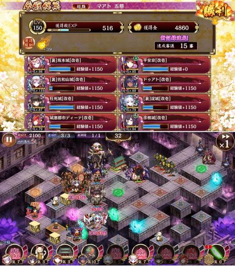 15審。再配置無し。配置順は最後にディーテ(ドラム)置くようにして適当に。最初に裏坂本(ラケット)を最大化させ計略ONでディーテに届くので巨大化開始。ディーテの計略が使用可能になったら使っていく。基本使いっぱなしでOK。近くに平安トークンを置く。8の王氏城のHP割合ダメージが決め手で空を飛んでる敵を落とすのに最適。頃合いを見て彦根のCT短縮目的で最大化する。ディーテの被弾が多いので配布の棍を最大化させると負担が減る。全員最大化させて計略使いっぱなしで道中もボスも行けてしまう。
