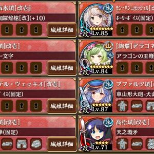 頭☆1殿ゆえ、バフ盛り盛りのWプラハで15審北条焼き切った。画像の状態から、肥前名護屋の計略使ったのち、最大化x2とダメ計x2でいけた。