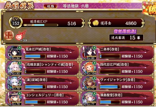15審。寛永江戸の被ダメ、裏淀の与ダメと攻撃アップでバフは十分。残り枠にダメ計略娘を突っ込んで三成撃破。寛永江戸の代わりに本を入れたけど被ダメ無いと届かなかった。うちの所領では平の被ダメ要員は貴重。