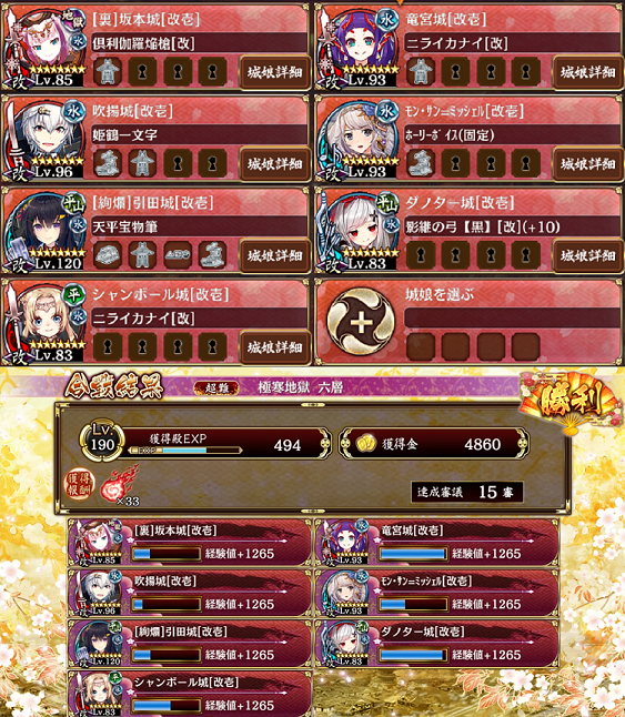 再度挑戦していたらいけたので鬼ヶ島と季節限定なし7体編成で15審クリア。[[15審7体編成クリア動画>https://www.nicovideo.jp/watch/sm41047697]]、残り一枠は時短用に3000バリアを超えられる城娘か道中を楽にしてくれる城娘の好きな方で。