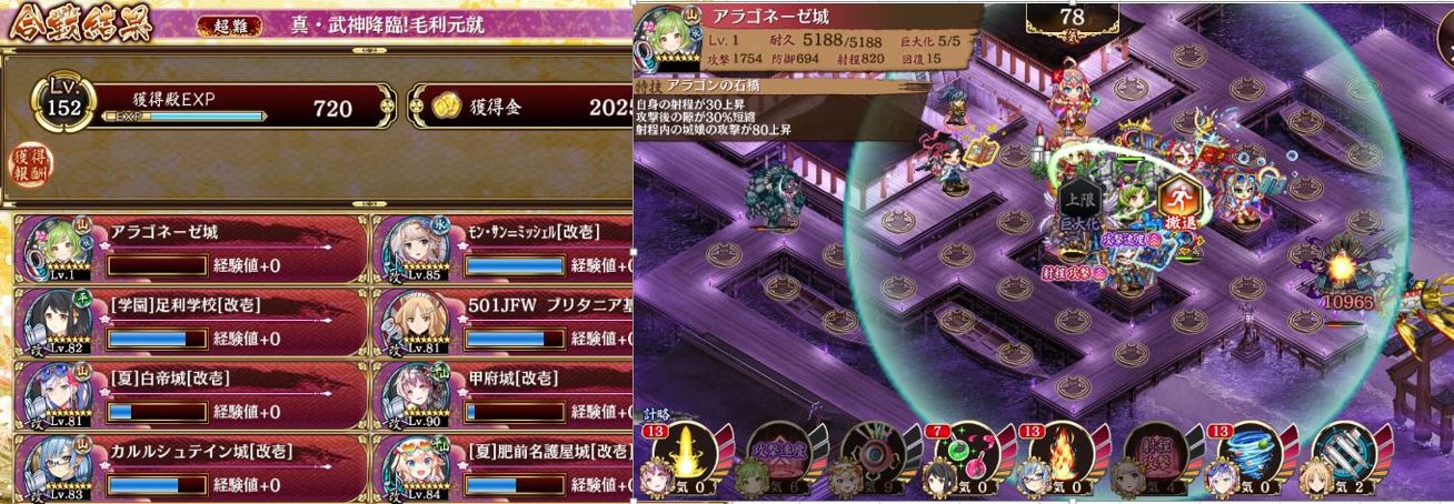 倉庫からアラゴ引っ張り出してやってみた。毛利超難程度なら未改築の絆0のレベル1でクリア出来たんだけど。お供はてきとーに選んだ歌舞と本だけ。本計略は未使用。バフで射程アプやら攻撃1700とか行くんだから毛利超難の必要要件はマルチアタックできるかどうかだよ。エーリカの弱点はメリットでもあるんだけど気20で巨大化できないステが伸びない点。この攻撃力で遠距離半減の敵を倒すのはきつい。計略で手数が増えても、敵の防御を貫けてるとは言えず効果的ではない(相性で攻撃力半減されて、そこから敵の防御力あ引かれる計算となる為、4連射がいきない)。対してアラゴは防御力無視持ちで敵防御力関係なし。誰相手でも働いてくれる。