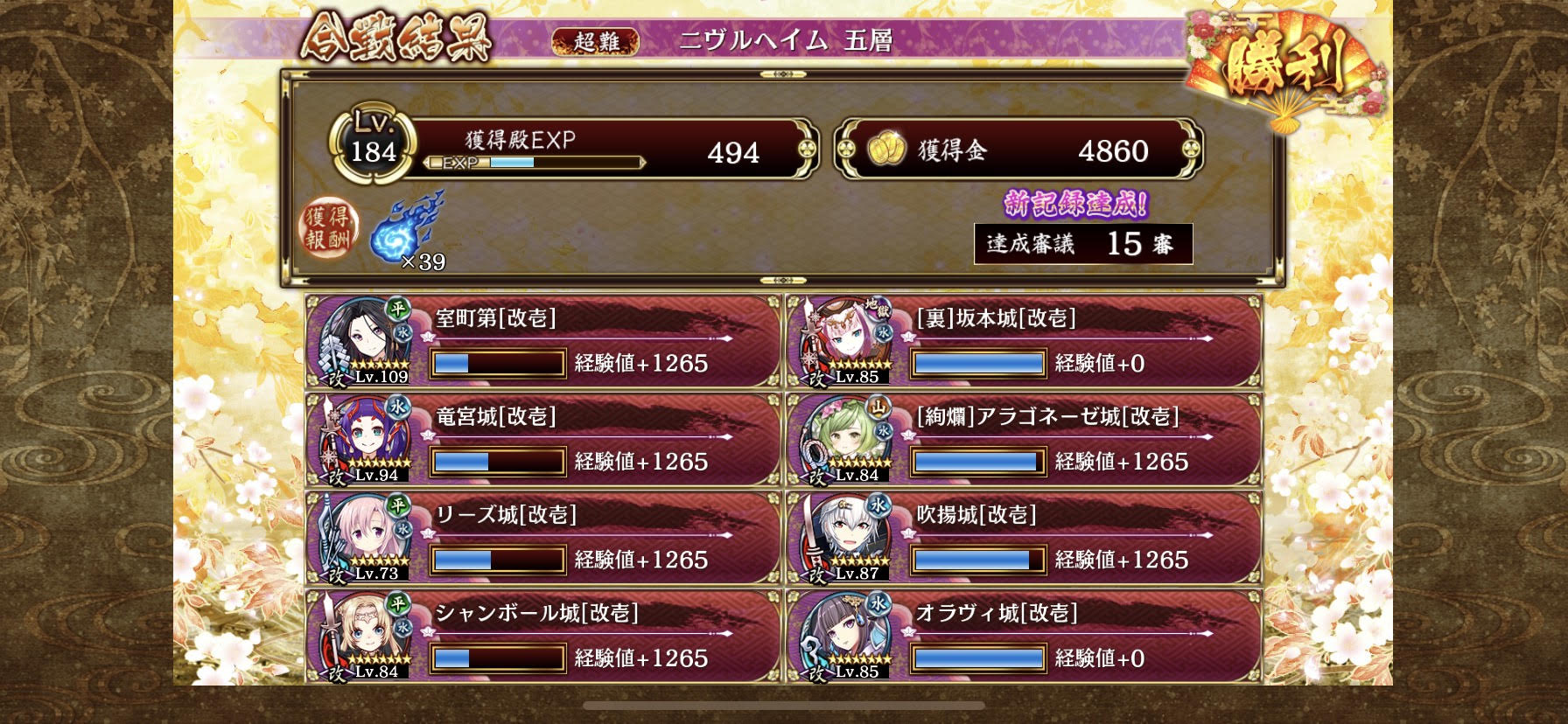 15審。リーズ城のバリアが八面六臂の大活躍だった。具体的には蔵を守ったり犬神の回復反転を凌いだり武神の攻撃に一回耐えたりした