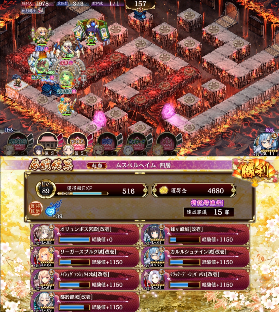 15審空蝉なし。 これより低レアの6人編成で攻略してる動画もyoutubeにあるのでクラック都於郡のセットがいると相当楽になるっぽい。